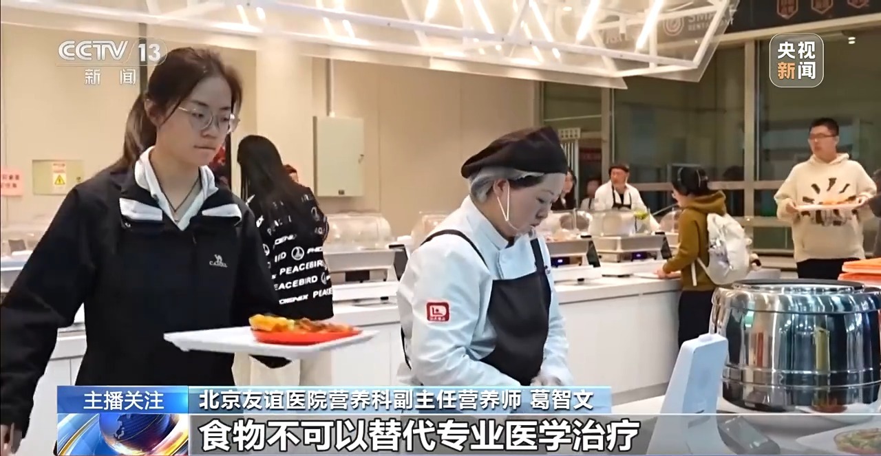 北京友谊医院营养科副主任营养师 葛智文:食物想要发挥自己的作用,那一定是在一个长期饮食结构合理的基础之上,进行长期的营养支持。过度依赖于某一些“超级食物”,或者说我们吃一次两次就能够获得明显的改善,这就是一个常见的误区。食物不可以替代专业的医学治疗,有问题的情况下,还是建议大家及时去就医。
